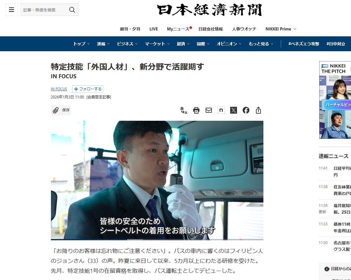 日経新聞(有料記事)において、当社が教育・支援してきたフィリピン人バス運転士の活躍が紹介されました。